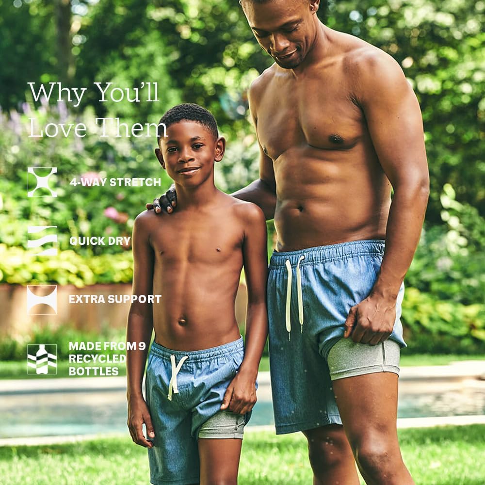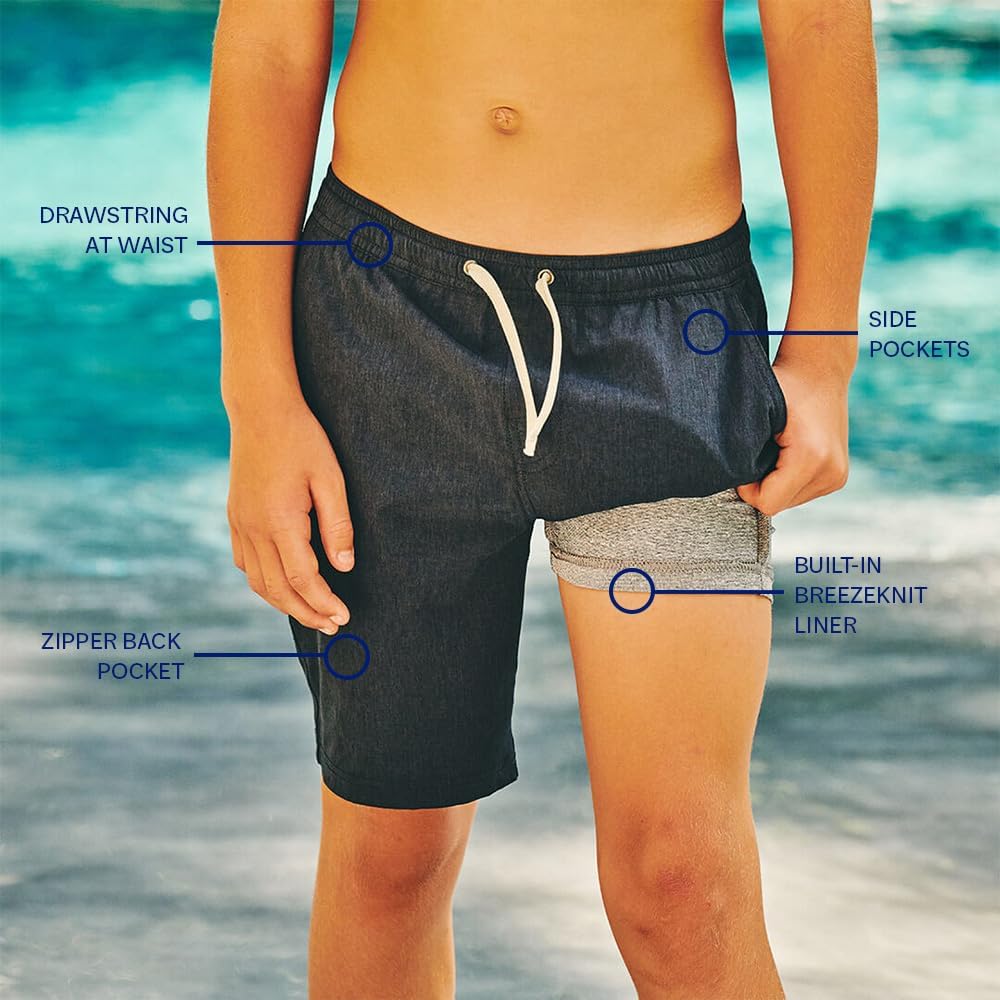 The Kids One Short with liner is our ultimate, all-day wear, no-fuss short with a 6-inch inseam and is the ultimate in comfort and all-day versatility. Designed with our super soft built in boxer brief liner, the Kids One Short will allow them to enjoy the beach without the chafing burn. Pair with our men's One Short for a matching duo.