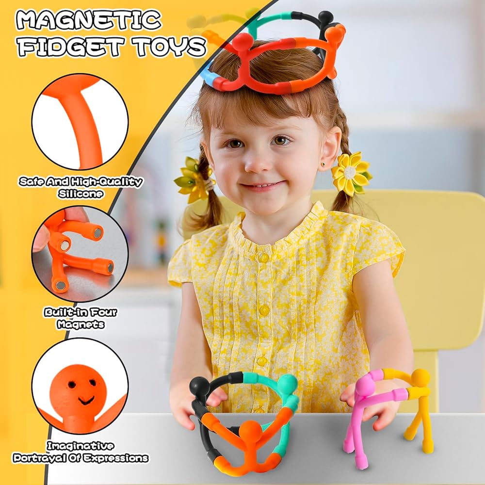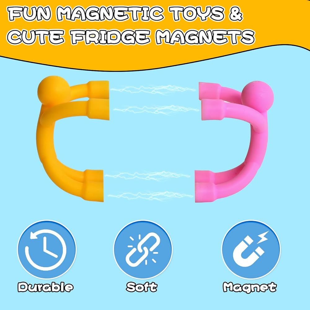 Magnet Toys: This humanoid magnet is made of high quality rubber and magnets. There are 4 durable magnets built into the arms and legs of the toy, and the body is bendable and resistant to deformation and color fading. Suitable for ages 3 and up.