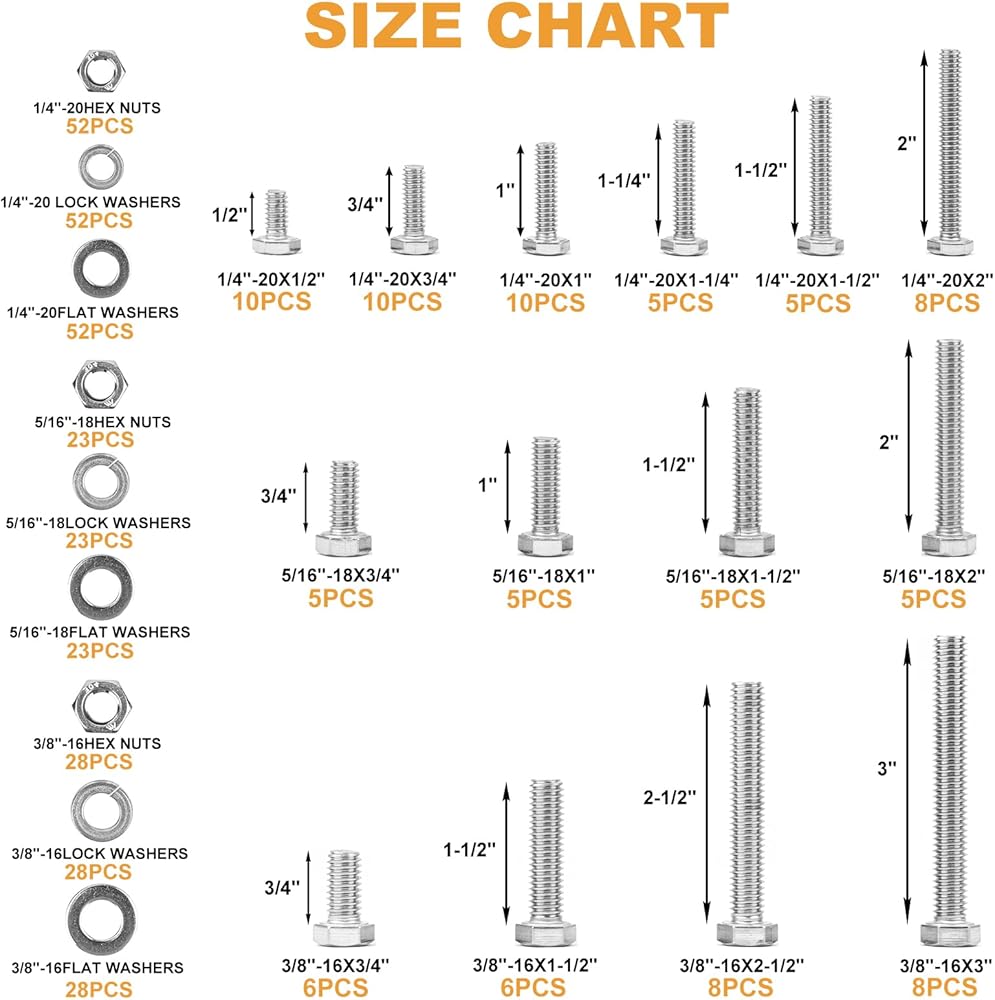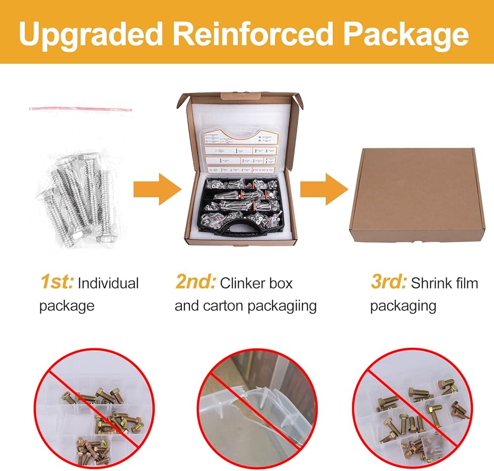 🔩【Portale Durable Box】 you will get a well packed bolts kit: 1. all bolts are in the thickened case; 2.there are foam on every side of the box to protect the kit well; 3. there is a third kraft paper box to protect these bolts nuts assortment.