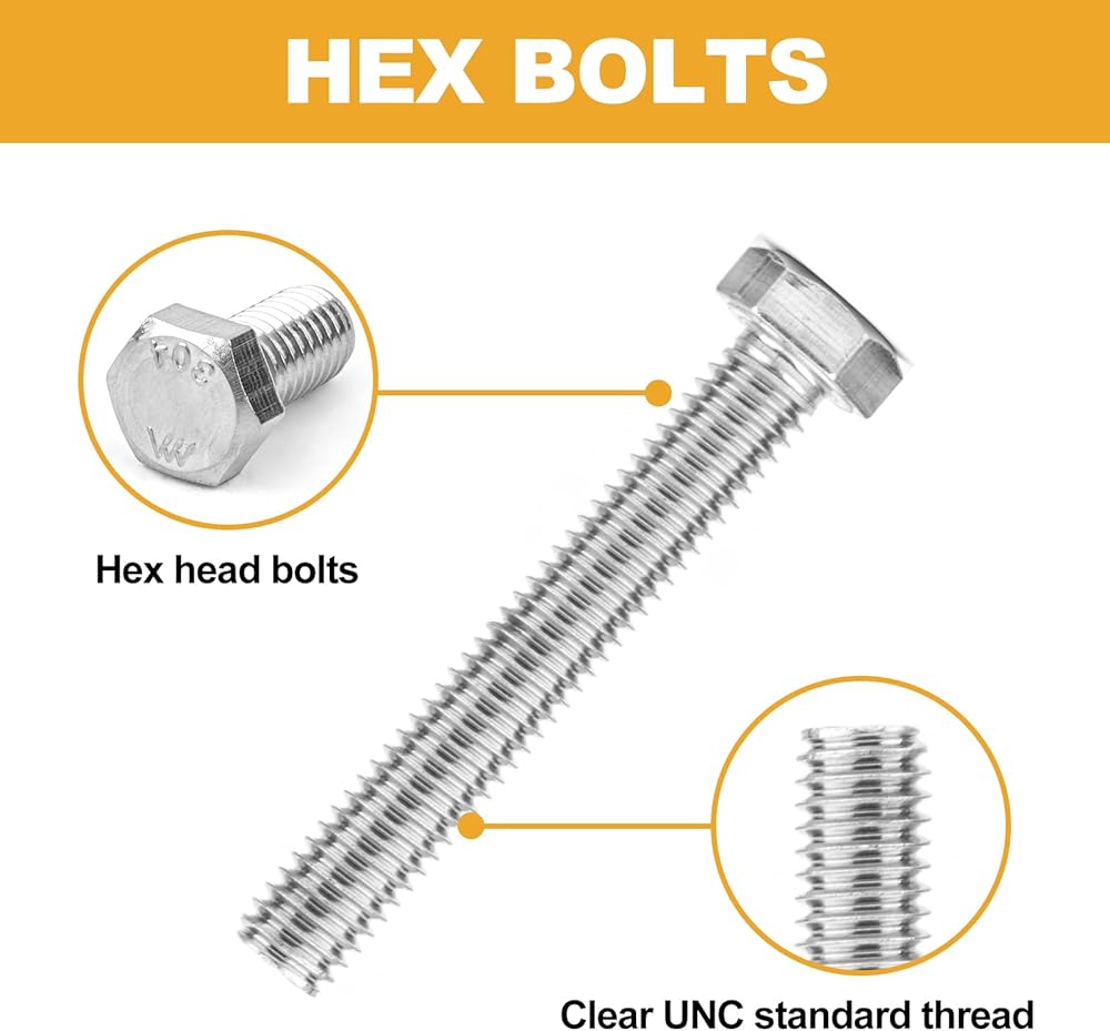 🔩【High Quality】 SAE bolt are made of grade 8 alloy steel and METRIC bolts made of are class 8.8 Alloy Steel; zinc plated finish, strong and durable, corrosion resistance property.