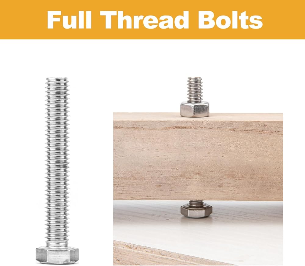 🔩【25 Various SAE & Metric Sizes】VIGRUE This nut and bolts set includes 13 SAE sizes: 1/4-20 x 1/2" to 1-1/2", 5/16-18 x 3/4" to 1-1/2", 3/8-16 x 3/4" to 2"; and 12 METRIC sizes: M4 x 16mm/20mm/25mm/30mm, M5 x 16mm/20mm/25mm/30mm, M6 x 16mm/20mm/30mm/40mm; totally 25 practical different sizes