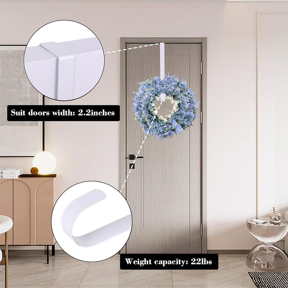 SUITABLE for DOORS of ANY SIZE- The size of this garland hanger is 12*0.9*4in, the wider design gives the decor a better look, the thickness is 0.1in (about the thickness of two dimes), and the weight is 3.2oz, suitable for doors of any size.
