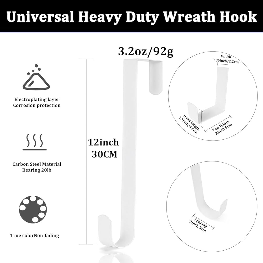 EXCELLENT BRIGHT COLOR-The eye-catching white appearance makes this hook look very high-end. The advanced paint technology on the surface keeps the hook intact all year round. The white hook can be matched with any color of doors and garlands.