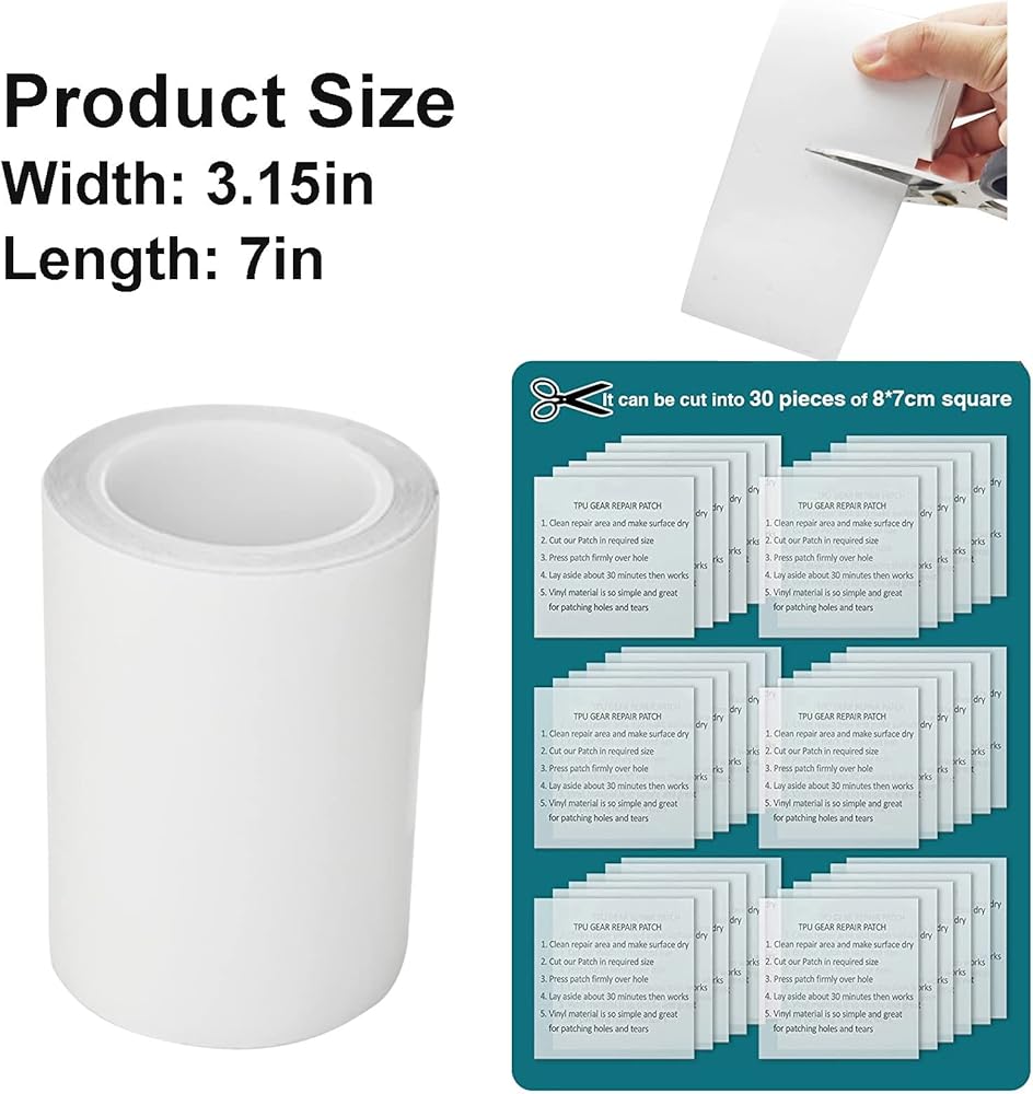 💪 Strong Sticky TPU Repair Tape---Our clear inflatable patch repair tapes are made of high quality tpu material, non-toxic and tasteless. Easy to stick without glue needs. It good in long lasting used, doesn't like vinyl tape easily to peel off. It would be magic patch for the hole, tear of inflatable products.