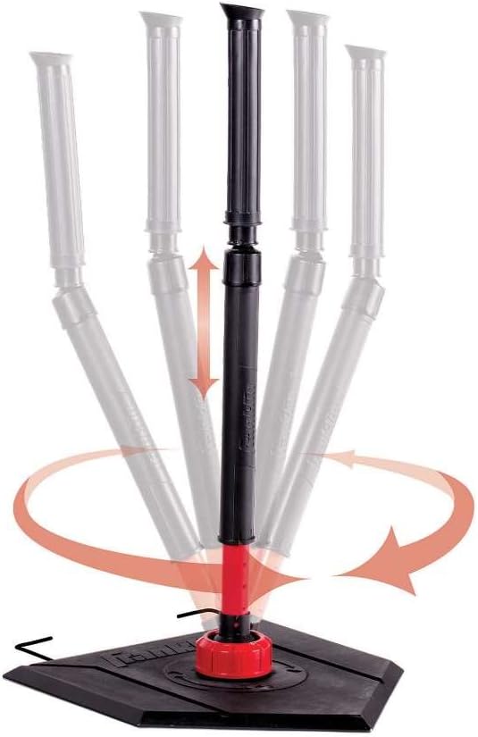The MLB Rotator Tee from Franklin Sports was developed to allow batters to practice hitting outside, middle, inside, high and low pitches. The innovative tee swivels and locks into position for full plate coverage. Height adjusts from 22"-36." FEATURES 360 Degree full range locking post for infinite hitting positions Promotes proper swing mechanics and body positioning Build confidence for hitting all types of pitches Perfect for practice or tee ball games Built in vertical height indicator window Adjusts 22" to 36" vertical adjustment for high and low pitches Durable RUBBER-TEK plate with steel support extenders for added stability.