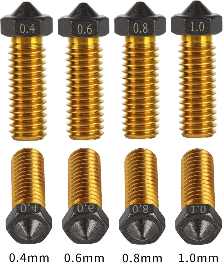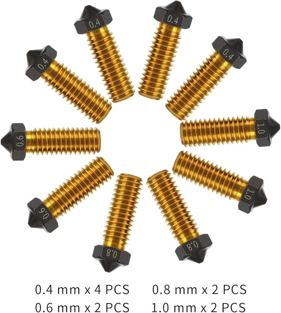 【Package Included】4pcs x 0.4mm nozzles; 2pcs x 0.6mm nozzles; 2pcs x 0.8mm nozzles; 2pcs x 1.0mm nozzles.