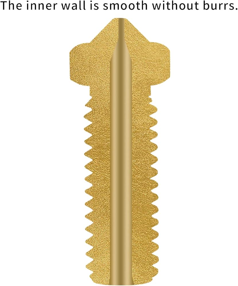 【Smoothly Printing】The inner hole of the extruder PTFE volcano nozzle is smooth and has no burrs, it is not easy to be blocked, and will not affect the printing. It can reduce the resistance from the corners and avoid blocking of the filament with rounded chamfer.
