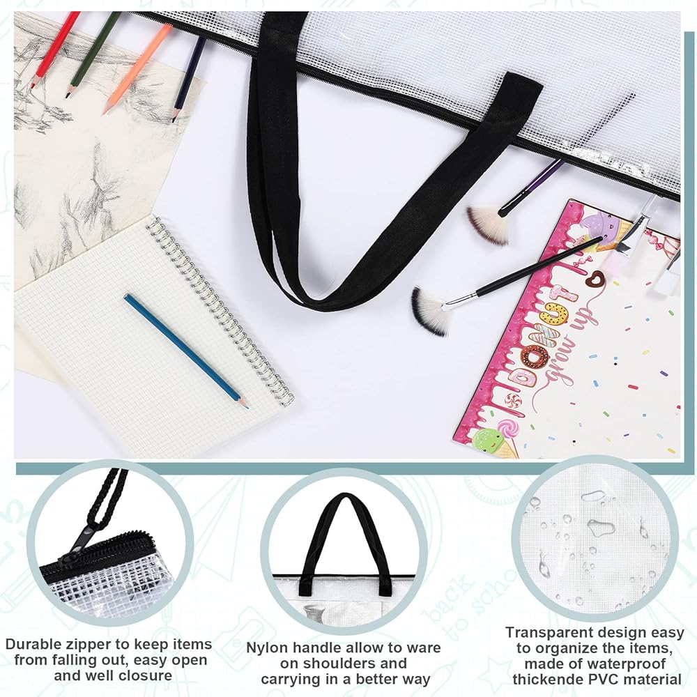 Cunno 3 Pieces Art Portfolio Case 24 x 36 Inch Large Art Storage Bag Portfolio Case Poster Storage Bag with Zipper and Handle Clear Organizer Folder for Back School Large Paintings Artwork (Black)