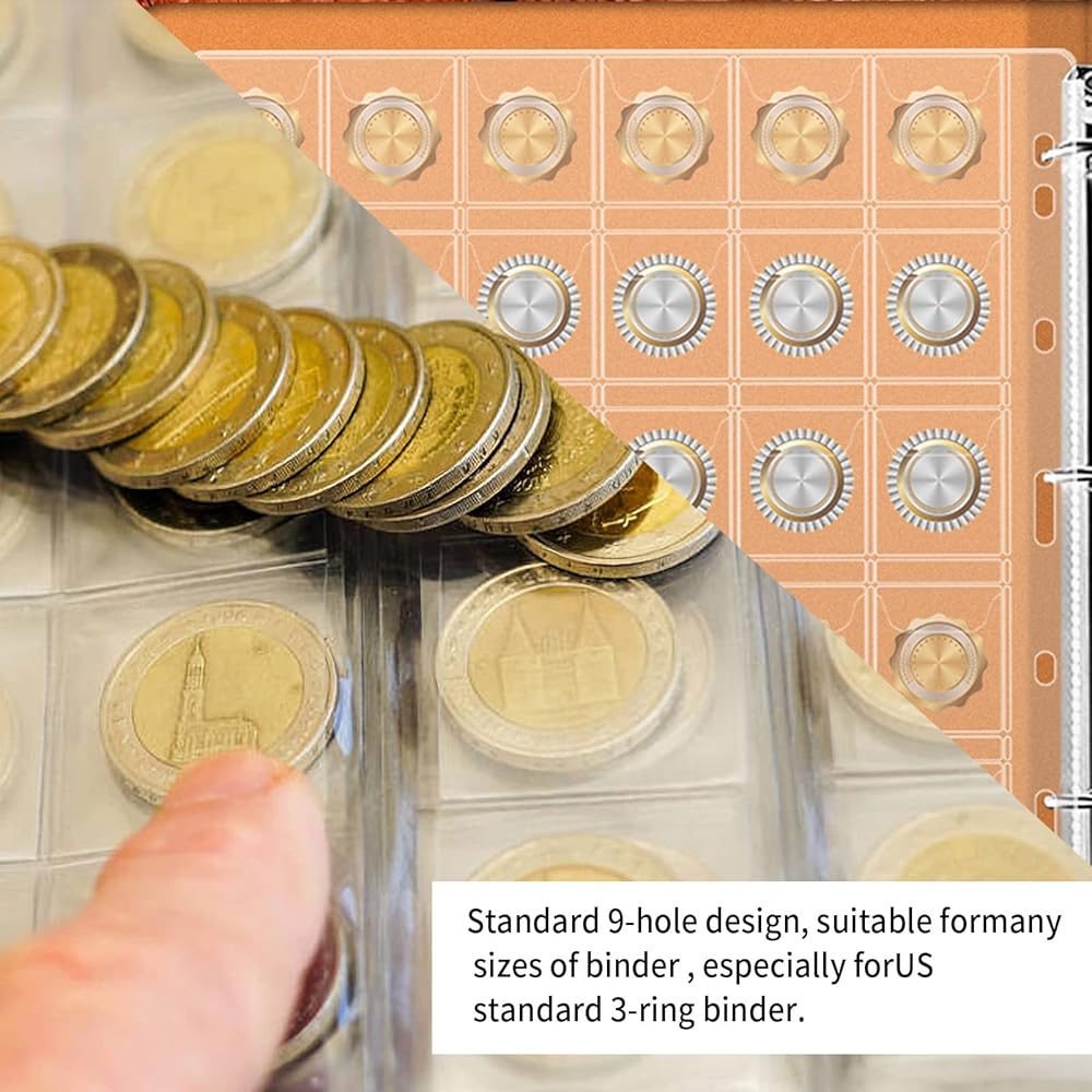 - 9-hole loose-leaf design, coin pocket pages are convenient for displaying and storing coins, silver coins, etc.