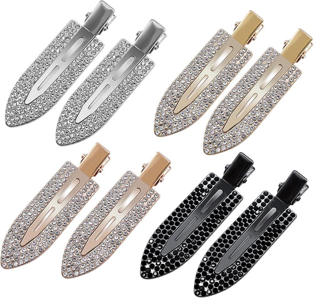 PAPARELA Hair Clips 8 PCS Rhinestone No Bend Flat Styling Clip No Crease Hair Clips for Bangs Barrettes for Women Girls Makeup Hairstyle Tool Bling Diamond Metal Hair Clips