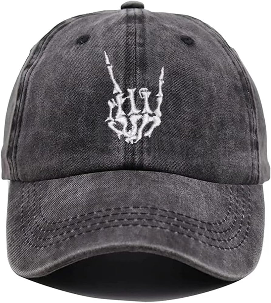 Halloween Skull Baseball Cap Hats for Men Women Emo Cool Gothic Goth Skeleton Perfect Best Grunge Spooky Graphic Birthday Presents Vintage Dad Trucker Hat Black