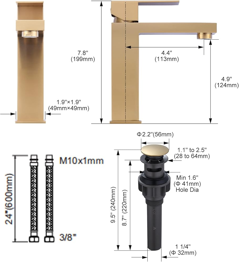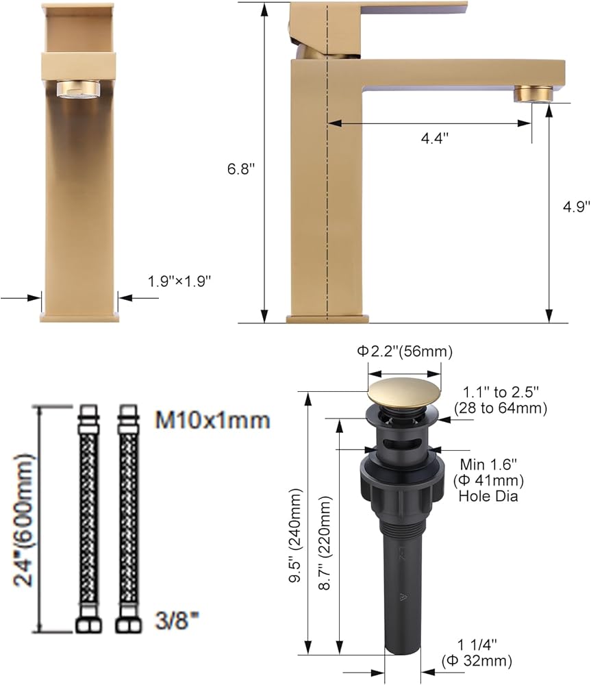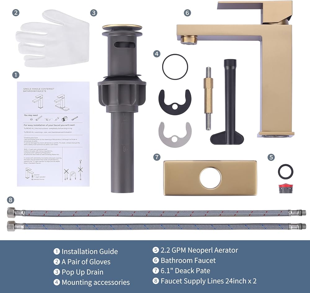 【Easy to Install 】This single hole bathroom faucet install easily, included 2*24 Inch cUPC supply hoses with 3/8 female compression thread and bathroom sink drain.