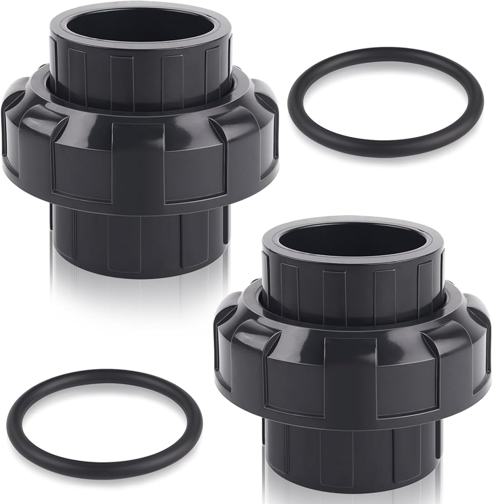 Excellent Sealing : Our PVC union pipe fittings performance well in sealing and quality. They are lightweight and easy to install. Built-in EPDM O-Rings seal for resistance to oil, water, and some solvents. Besides, we complimentary 2pcs extra free gaskets to meet your needs.