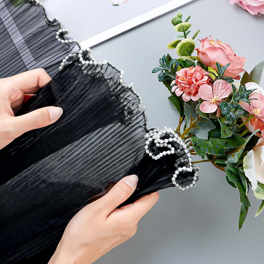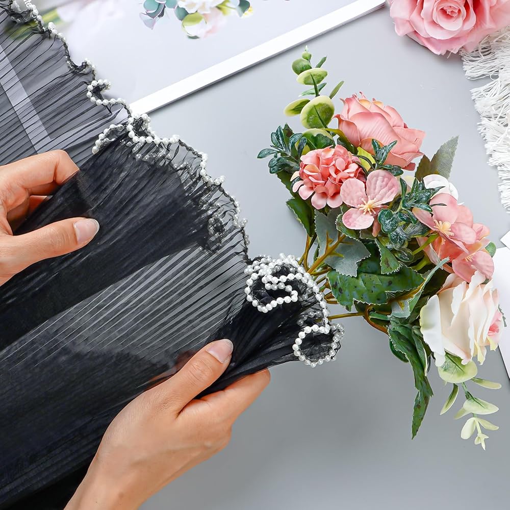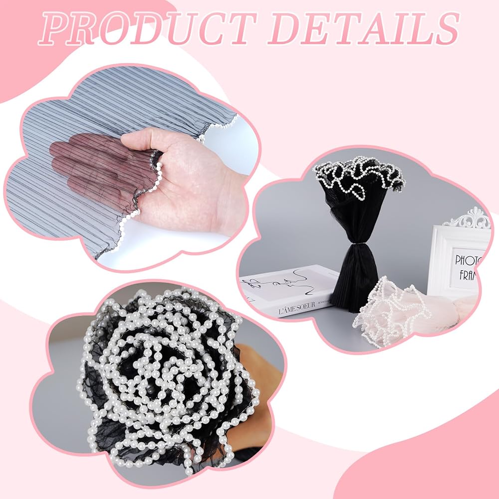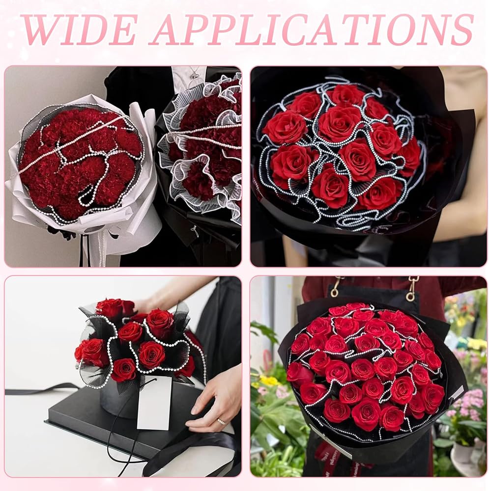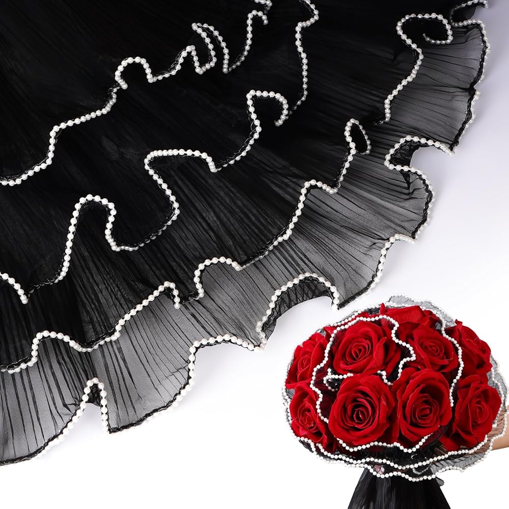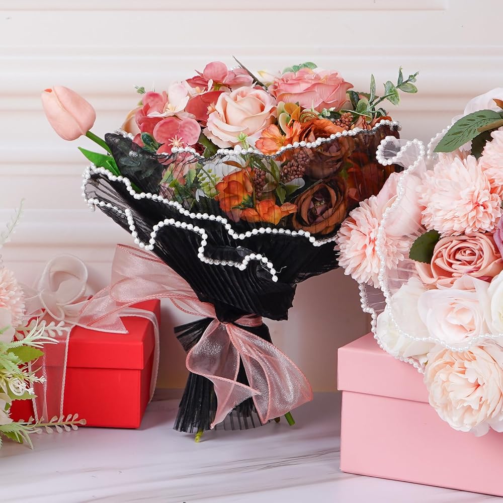 🌸【Elegant Design】Featuring a French-style wavy lace design, adorned with elastic pleats and lustrous pearls along the edges, our flower wrapping paper exudes sophistication and charm.