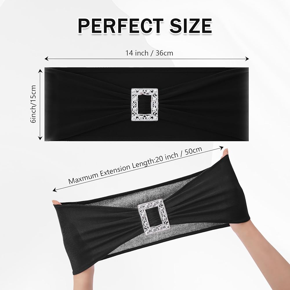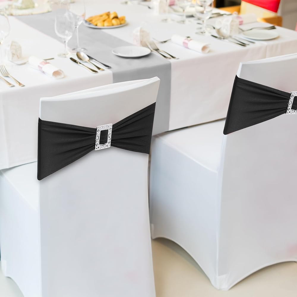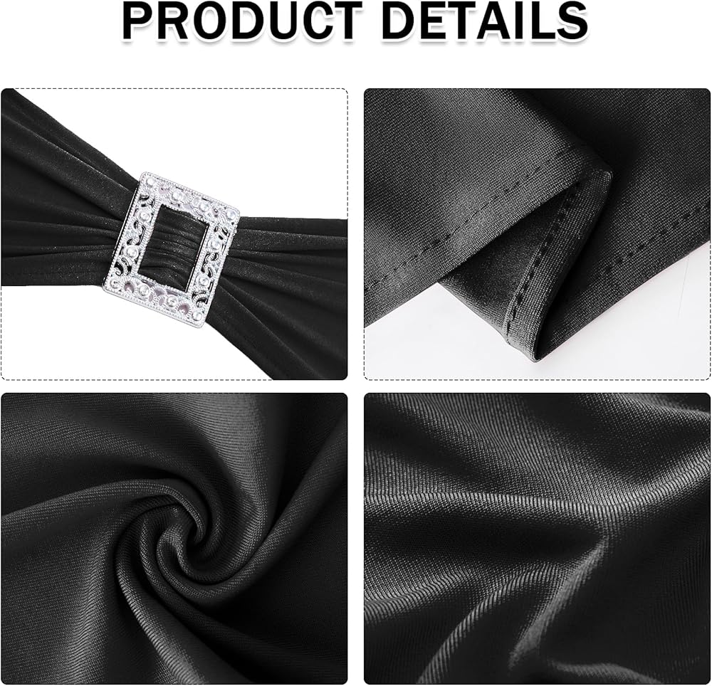 Joccun 30 PCS Spandex Chair Sashes Bows Stretch Chair Cover Band with Buckle Slider Universal Elastic Chair Ties for Wedding Banquet Party Event Decoration (Black)