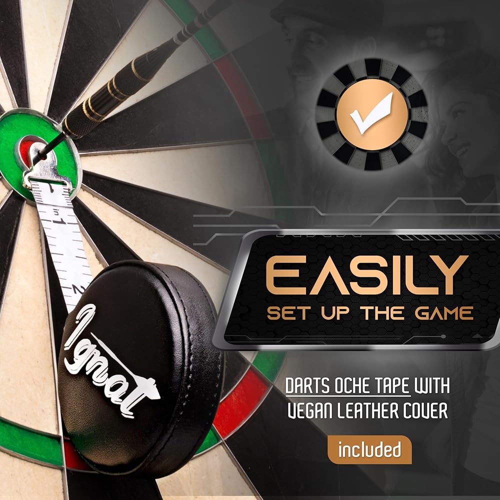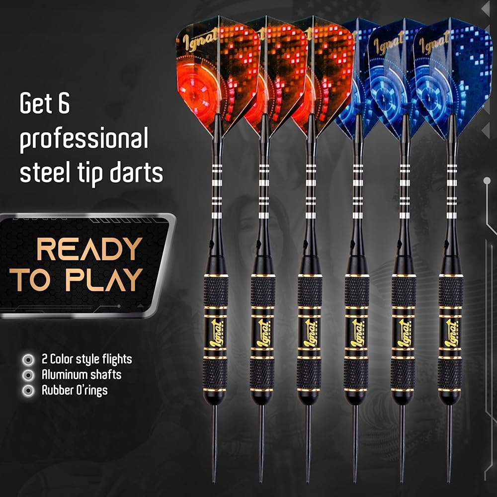 - ✔️ ALL SKILL-LEVEL GEAR: Official size bristle dart board, 6 elite-performance steel-tip darts, darts wallets, 2 color flights, and oche tape included.