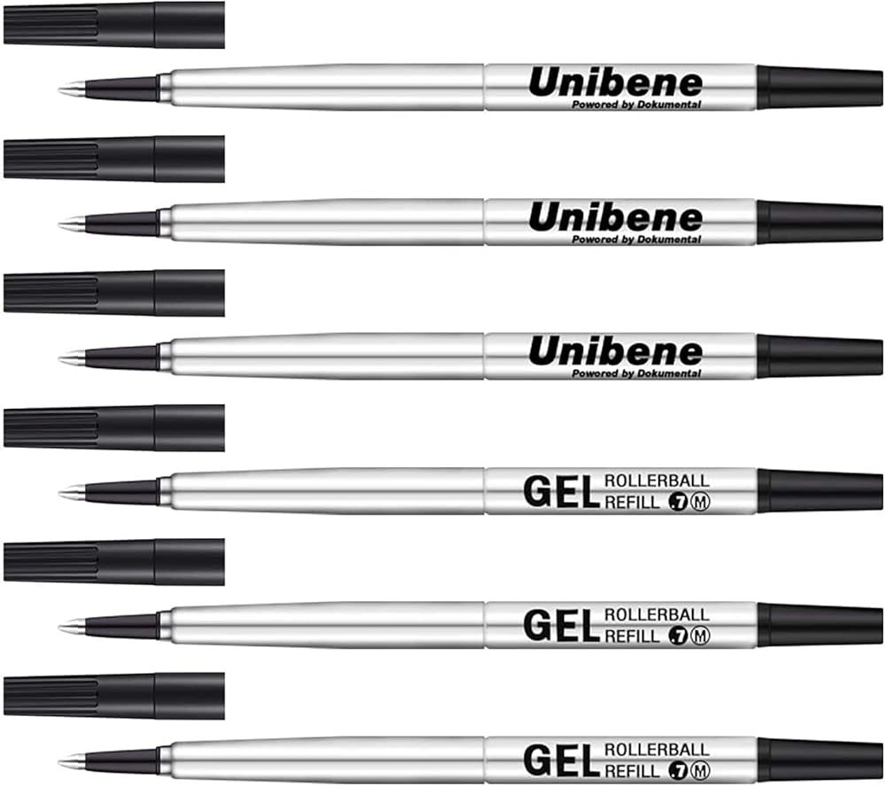 Unibene Parker Compatible Rollerball Refill 6 Pack, 0.7mm Medium Point - Black, Smooth Writing Replaceable German Gel Ink Pen Refills for IM Sonnet Urban Pens