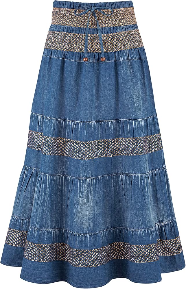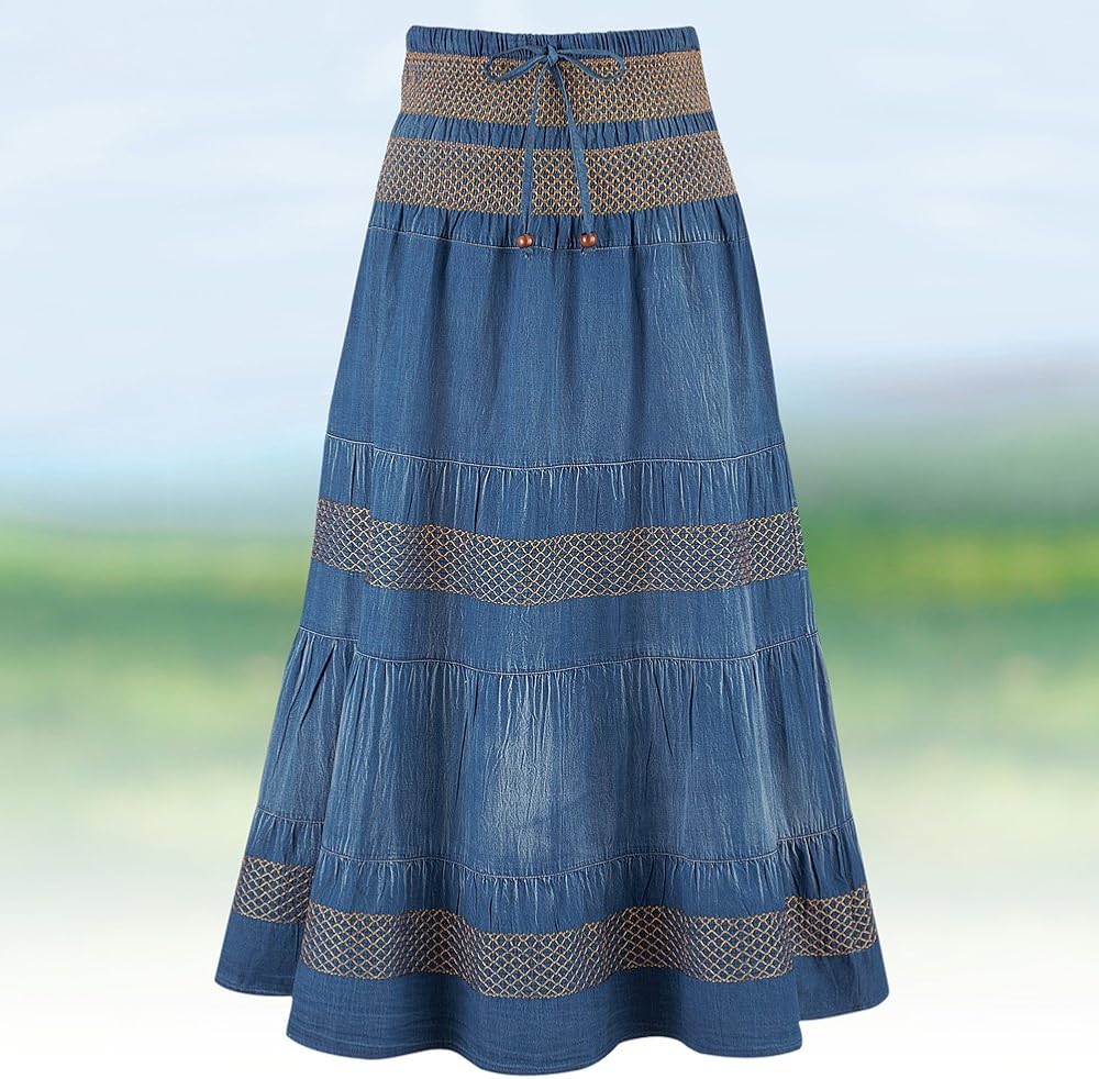 Tiered A-Line Denim Boho Prairie Skirt