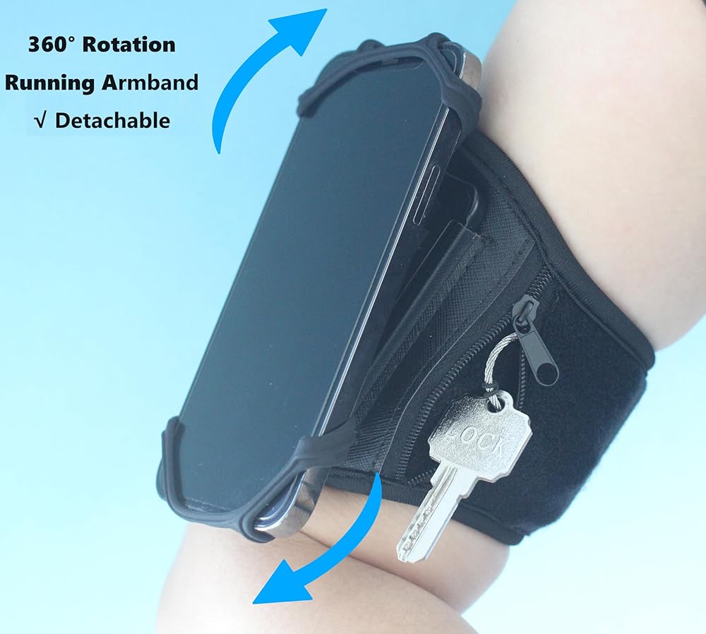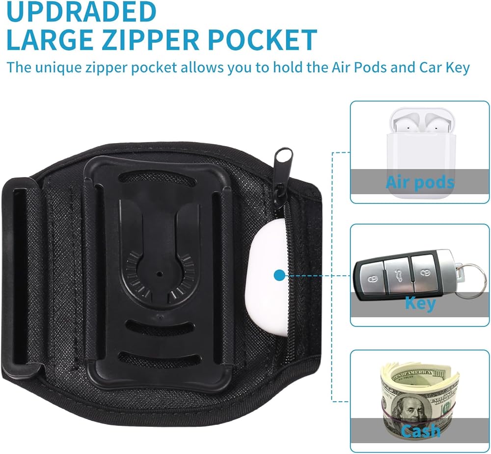 【Convenient Design with Airpods Bag】Featuring a unique zipper slot design, the armband includes a practical compartment for storing Airpods, car keys, or other valuables. Additionally, a built-in hidden pocket offers space for credit cards, keys, cash, and more.