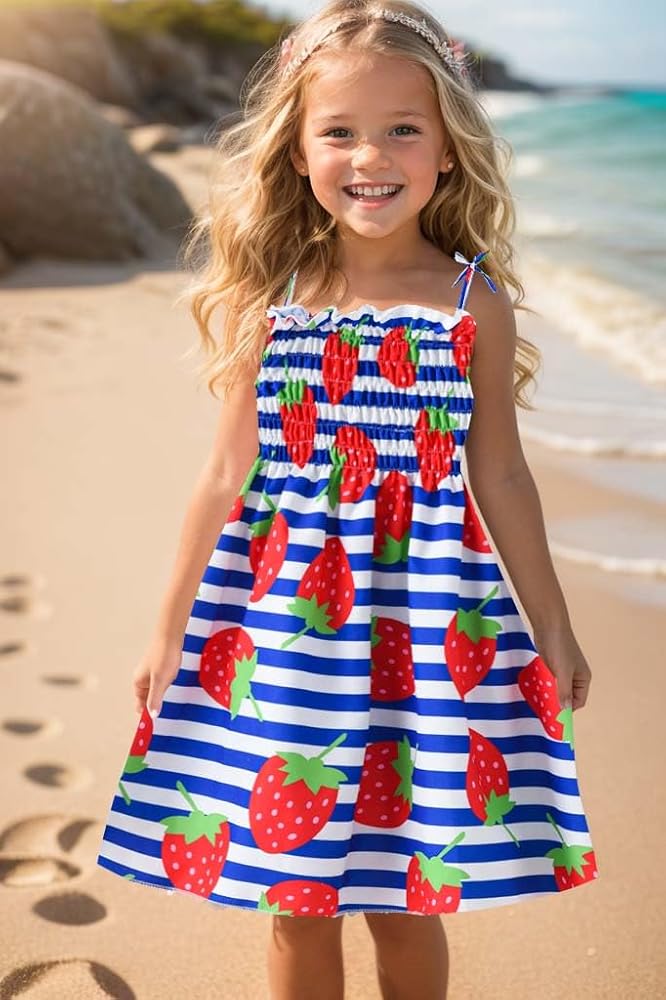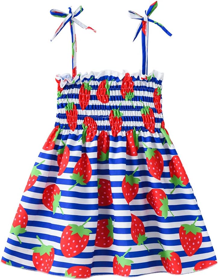 Enjoy a lovely summer with our sunflower, strawberry, dinosaur, and butterfly pattern printed dress; This backless, strap design is perfect for hot days, making it a must-have for girls aged 1-6 years old