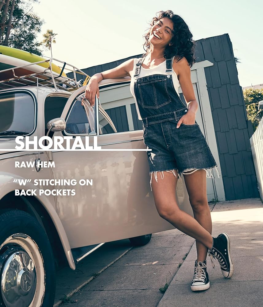 EASYGOING STYLE. Get the one-and-done look for all of your warm-weather outfits with this denim shortall. Just throw it over your favorite Wrangler tee for an effortlessly timeless look.