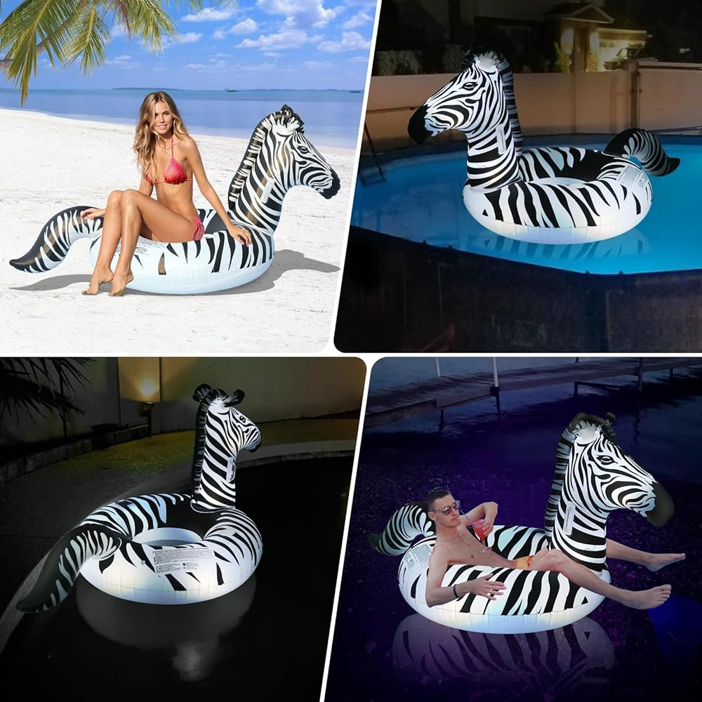 【Quality Warranty】Package Includes: 1 x Large inflatable zebra pool float with lights. We guarantee our pool floatie with lights 90 days 100% money back and 12 months warranty. If you have any questions, please contact us without hesitate, we will give you a satisfactory answer within 24hrs. the light up zebra swimming pool rings for adults is a fantastic choice for those seeking a fun, comfortable, and visually appealing pool accessory.