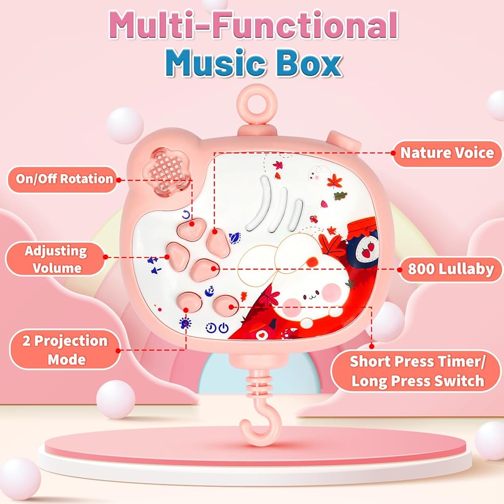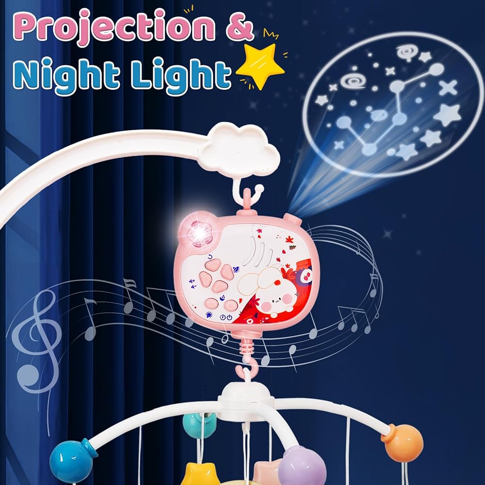 Baby Mobile for Crib | Crib Mobile with Music and Lights | Bassinet Mobile Crib Toys Hanging | Nursery Mobile Musical Crib Mobile for Baby Girl | Crib Mobile Arm for Girls Gift (Pink)