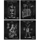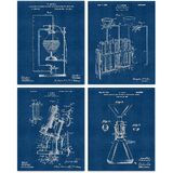DESIGNED AND MADE IN USA. The set of 4 vintage blueprint posters prints is bound to impress and rival collectibles of any R&D, science, chemistry fan, club or history buff.