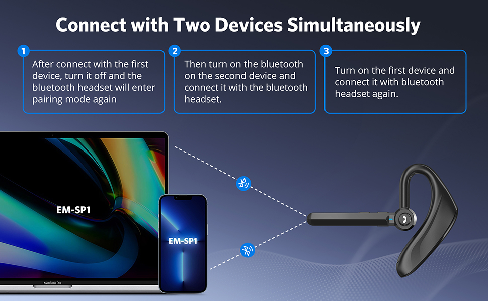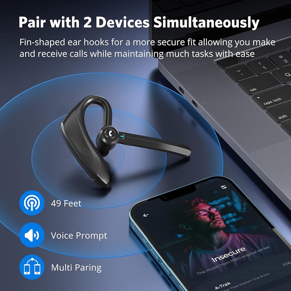 Dual-Mic Noise Reduction. Built in DUAL microphones, it enables you to answer&reject calls on the Bluetooth headset. Also, the Bluetooth headset for cellphone supports voice assistant. The wireless headset adopts the advanced chip,providing more clear sound and stable connection.