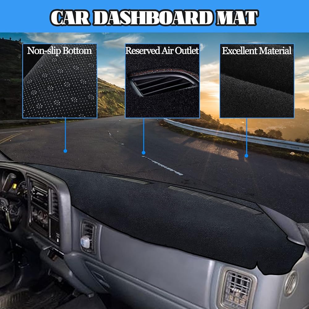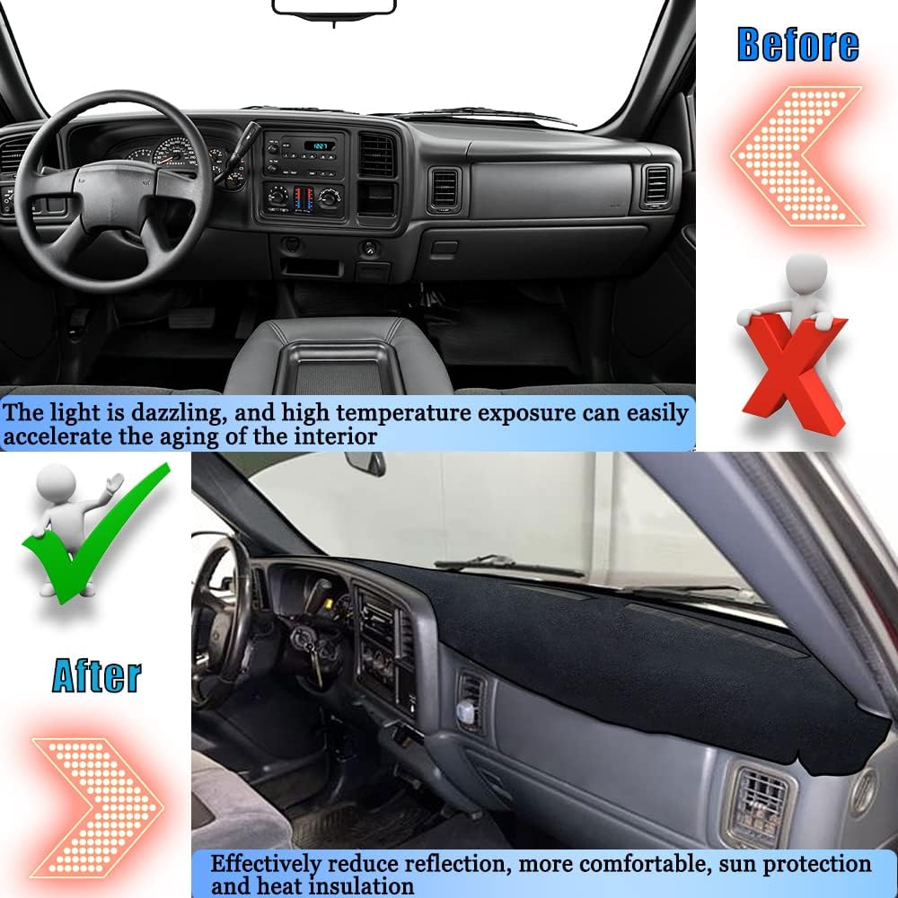 Dashboard Cover Dash Cover Mat Pad Carpet Compatible with Chevrolet Silverado 1999-2006 Avalanche Tahoe Suburban GMC Pickup Yukon Accessories Center Console Protector Cover Mat(Black Edge)