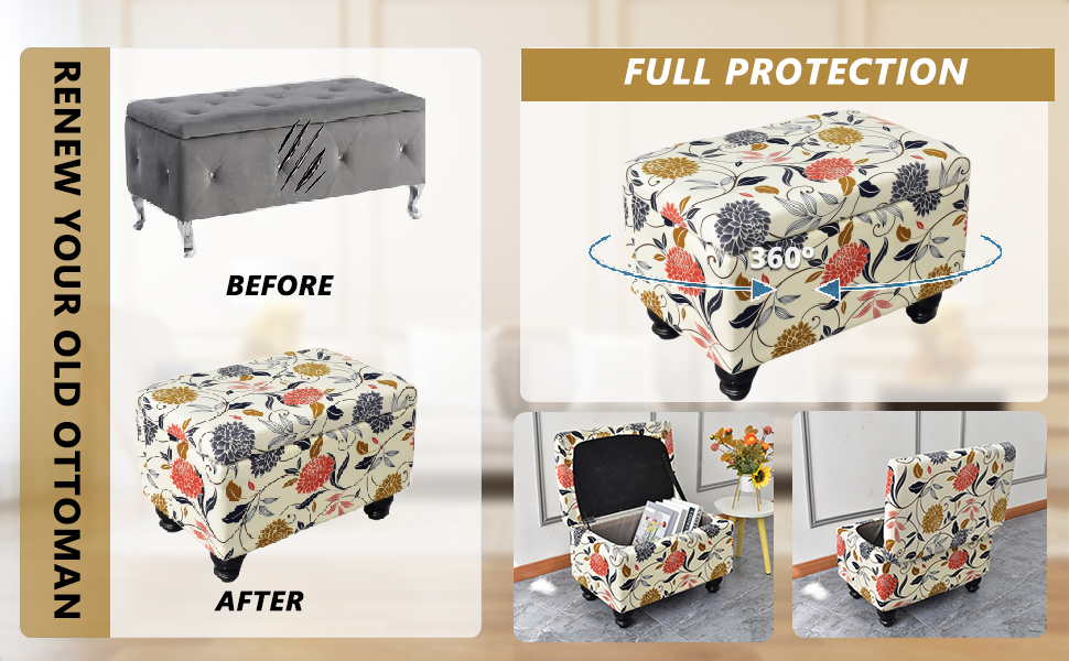 الحماية الكاملة: يوفر غطاء المقعد العثماني الخاص بنا حماية شاملة لمسندك. أغطية واقي مسند القدم المصنوعة من البوليستر شاملة 360 درجة، وتحمي مقعدك من البقع والتآكل والأوساخ والحيوانات الأليفة من جميع الجوانب، وتحافظ دائمًا على أثاثك طازجًا ونظيفًا.