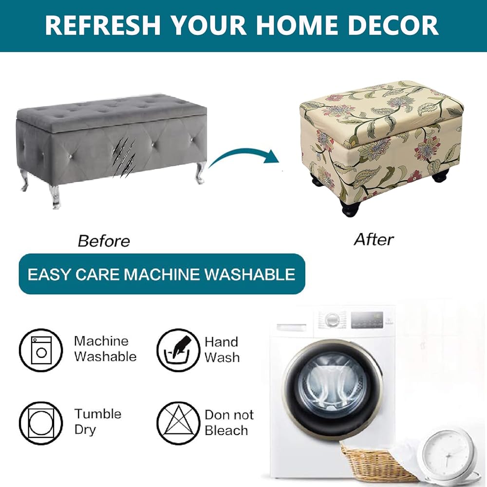 غطاء مقعد عثماني عالي الجودة: غطاء مقعد عثماني للتخزين المطبوع مصنوع من 92% بوليستر و8% ألياف لدنة. فائق النعومة وقابل للتمدد، ومضاد للتجاعيد ويدوم لفترة طويلة. تتميز بقاعدة مرنة للحفاظ على مكانها بإحكام، وتوفر لك المال عن طريق إطالة عمر المسند الخاص بك، وجعل أثاثك القديم يبدو جديدًا تمامًا.