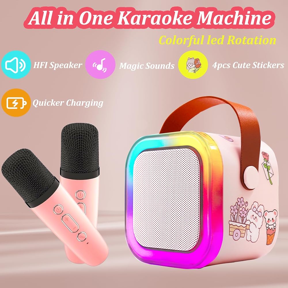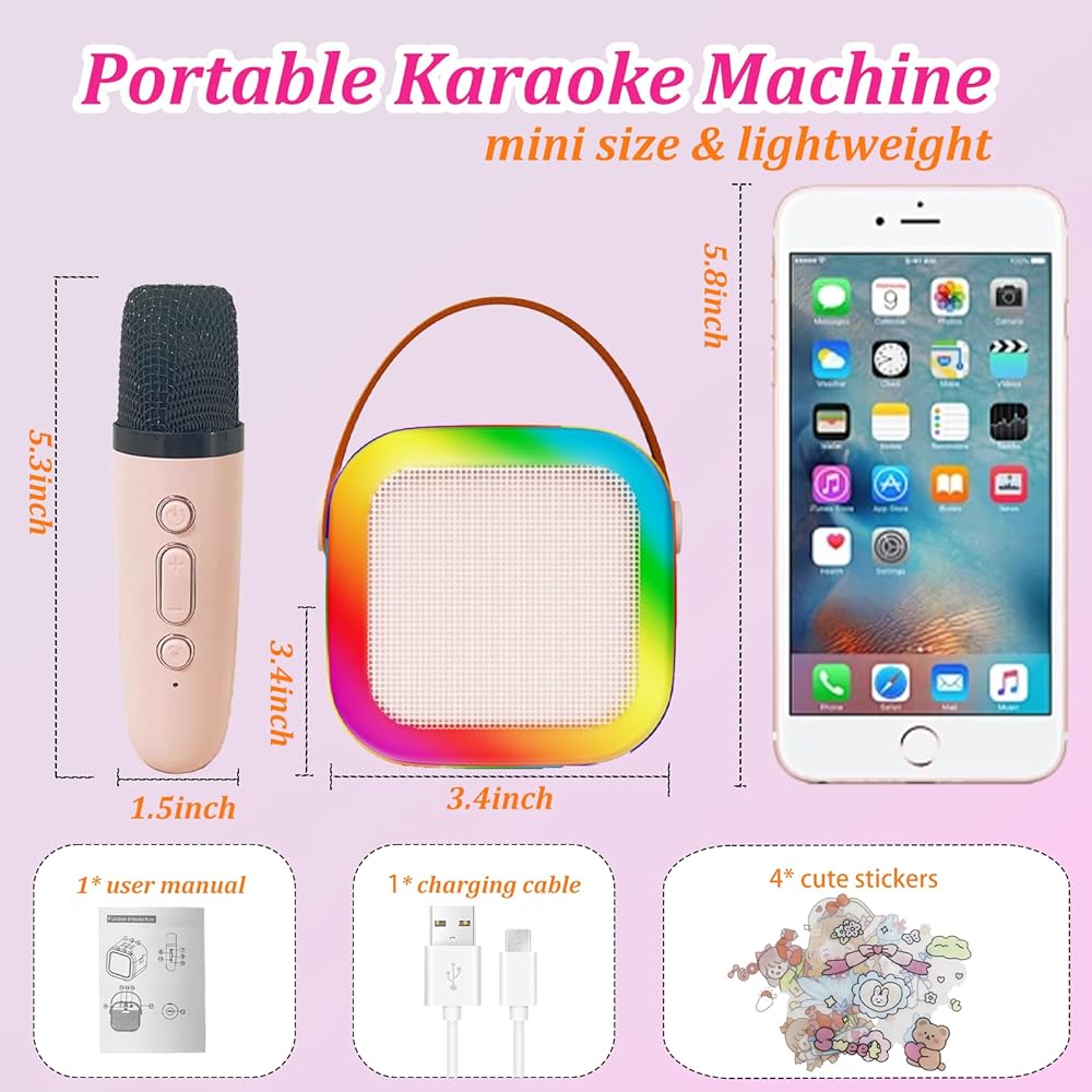 Mini Karaoke Machine for Kids with 2 Wireless Microphone, Portable Bluetooth Speaker 4, 5, 6, 7, 8, 9, 10, 12 Years Old Girls Birthday Gift Girls,Adults,Party, Home KTV,Outdoor,Travel