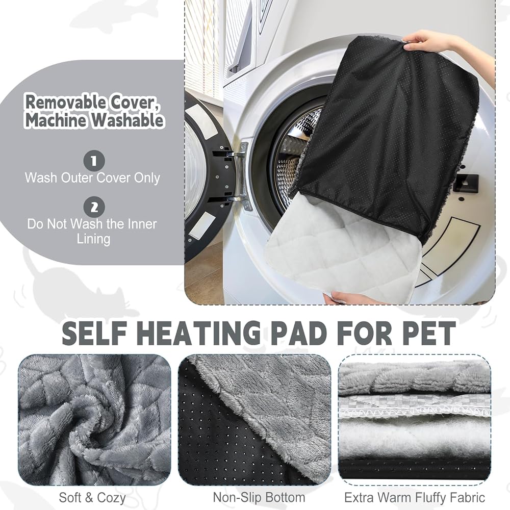 • Self Warming: the self heating cat pads are designed with a heat reflecting liner, capture pet's body heat and radiate it back, effectively helping pets stay warm without electricity, creating a warm sleep surface for pets, keeping your pets toasty warm in cold days; No need to worry about safety hazard or unpleasant smell caused by using an electric pad; Suitable for both indoor and outdoor pets to nap the day away