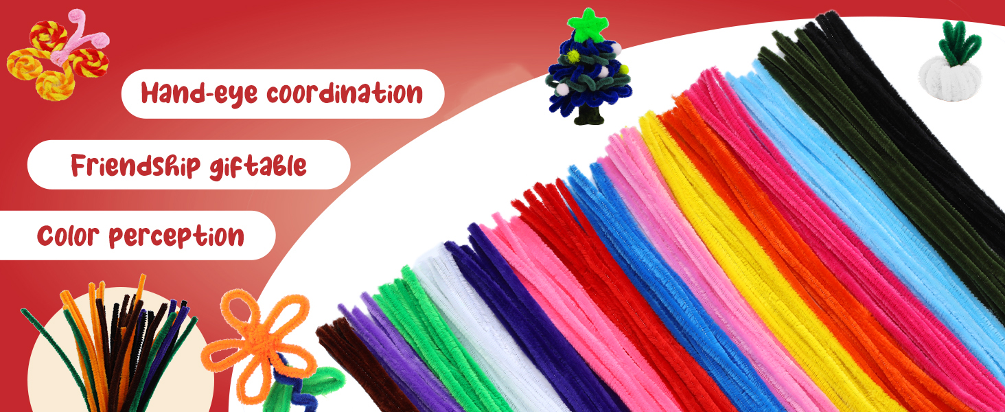 Fun Pipe Cleaner Art and Craft Creation: Utilizing pipe cleaner crafts can develop children's creativity and imagination, and can be used as a parent-child project to increase mutual understanding. High-quality pipe cleaners can also be the best choice for handmade lovers and daily stockpiles. Start your DIY creation with this set of pipe cleaners! You will have many hours of fun out of it!