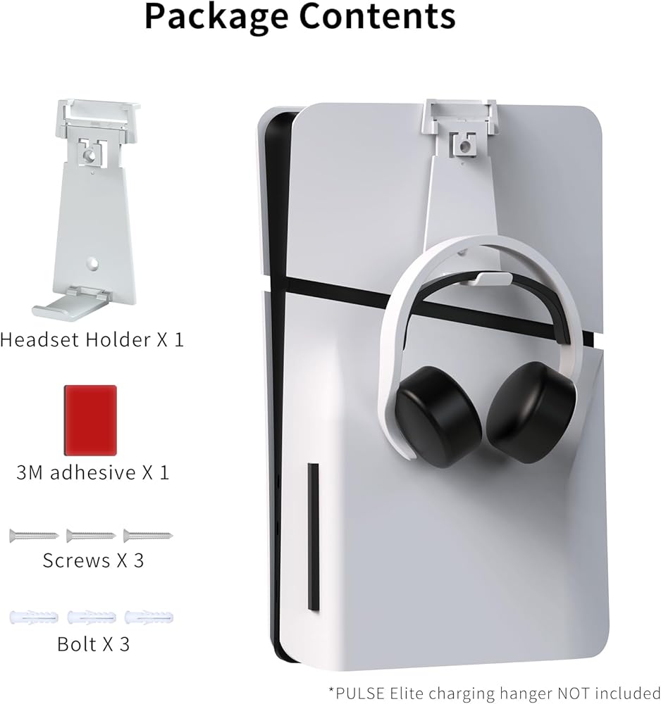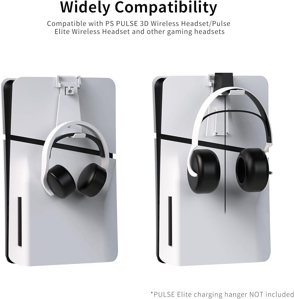 Headset Stand Compatible with PlayStation 5 Headset/Pulse Elite Headset(Support Charging Dock),Hanger for PS5 Headphone Stay Orgnazied on PS5 Console/Wall/Desk-White