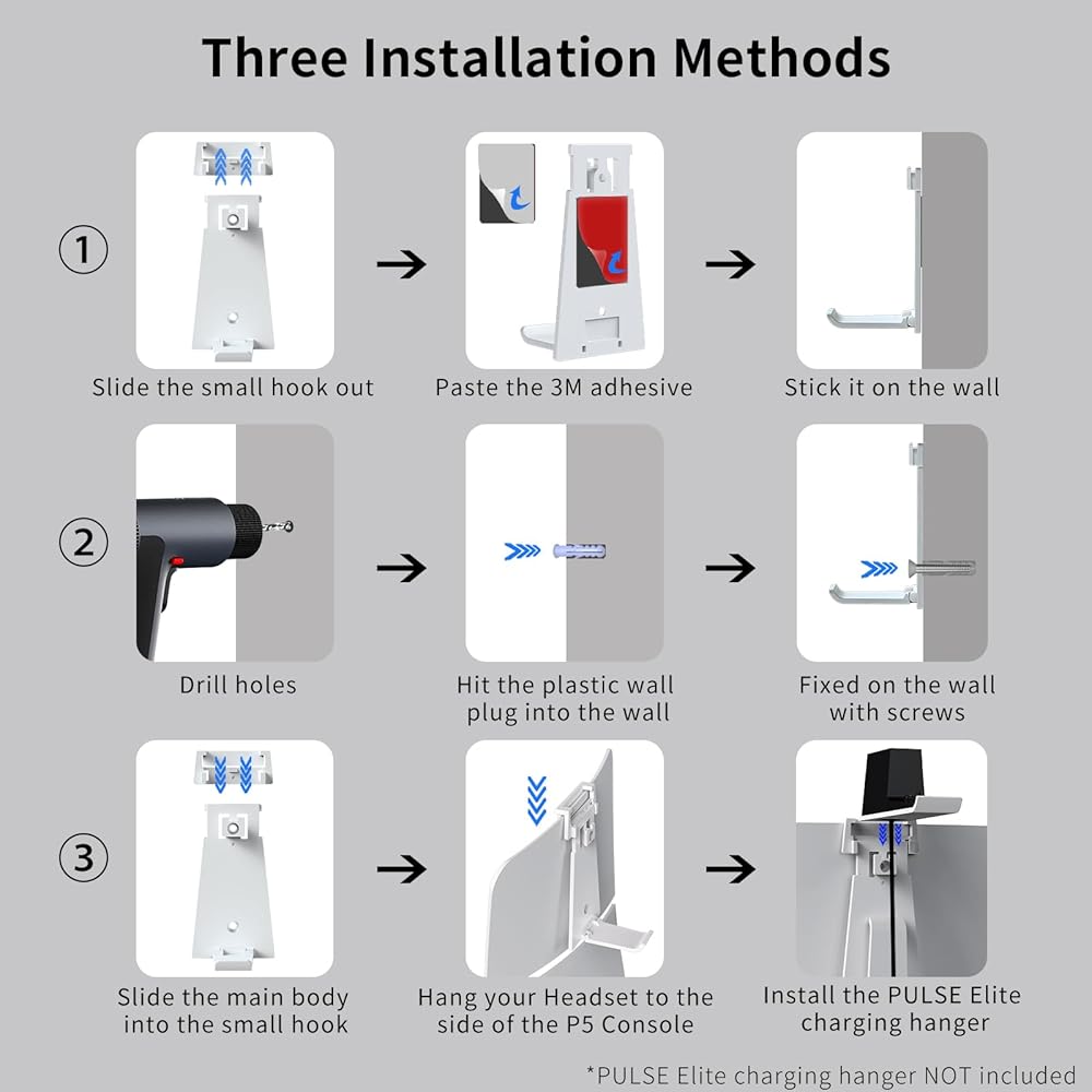 You can hang the gaming headset on the side of the PS5 console or on the wall, especially support PlayStation Pulse Elite Wireless Headset and charging cradle are able to hang PS5 console side!