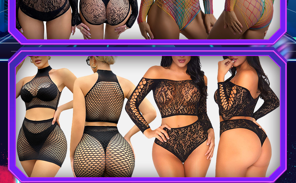 Sensual Style: 88% polyamide and 12% elastane and These mesh lingerie set includes a mini dress and stockings for a sexy yet comfortable look