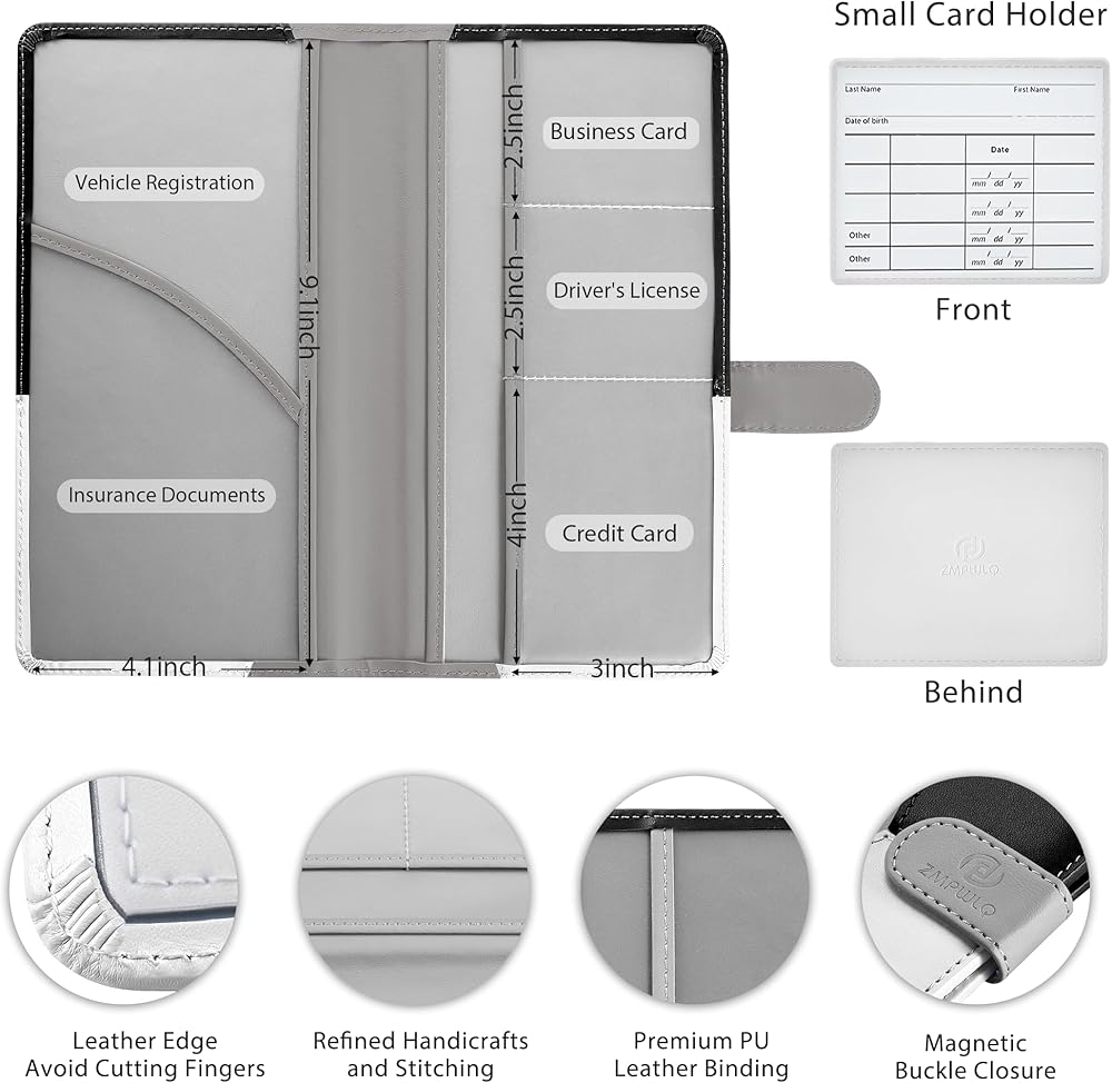 ✅【Compact Size & Magnetic Closure】-- Fold:5.11"x9.44",Unfold:9.05"x9.44" -- you won't need to fold your papers into the inserts. Vehicle Glove Box Organizer car accessories driver license holder is perfect to maintain your car essentials secured and protected. Build with inner magnet closure in the Leather Car Document Holder for Cards to keep all your important document safe and secure, ensure the files be stay closely within the card insurance wallet case and completely protective.