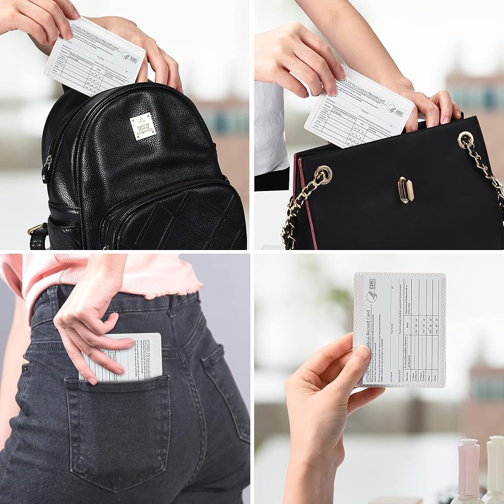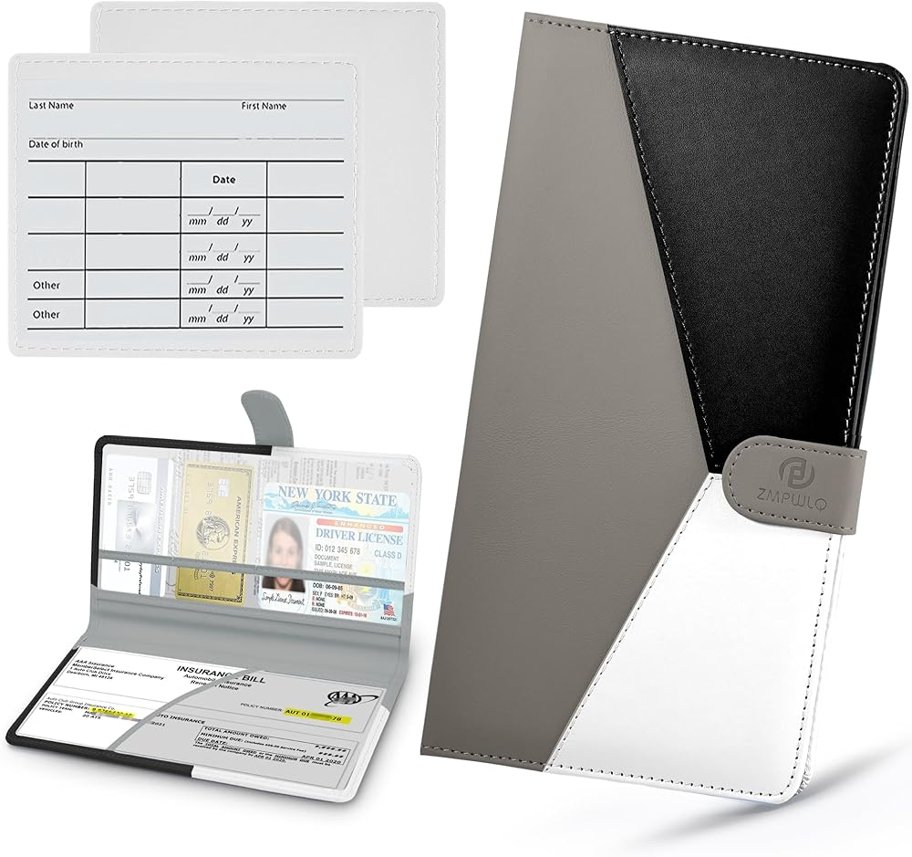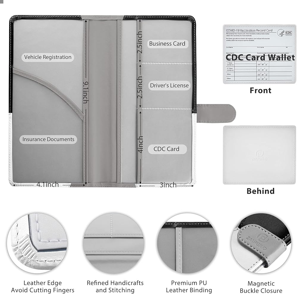 ✅【Easy to Access & Read】-- 6 Clear Sleeves Pockets+1 Vaccine Card Protector--1 large pocket for car insurance document,2 pockets for vehicle registration,3 small pockets for various cards. The inside clear windows makes it easy to identify the papers or cards at one glance and is always handy when you need to retrieve them. Vehicle Glove Box Organizer Leather Car Document Holder for Cards protects your document away from losing in the car glove box or crumpled and torn from moving things around.