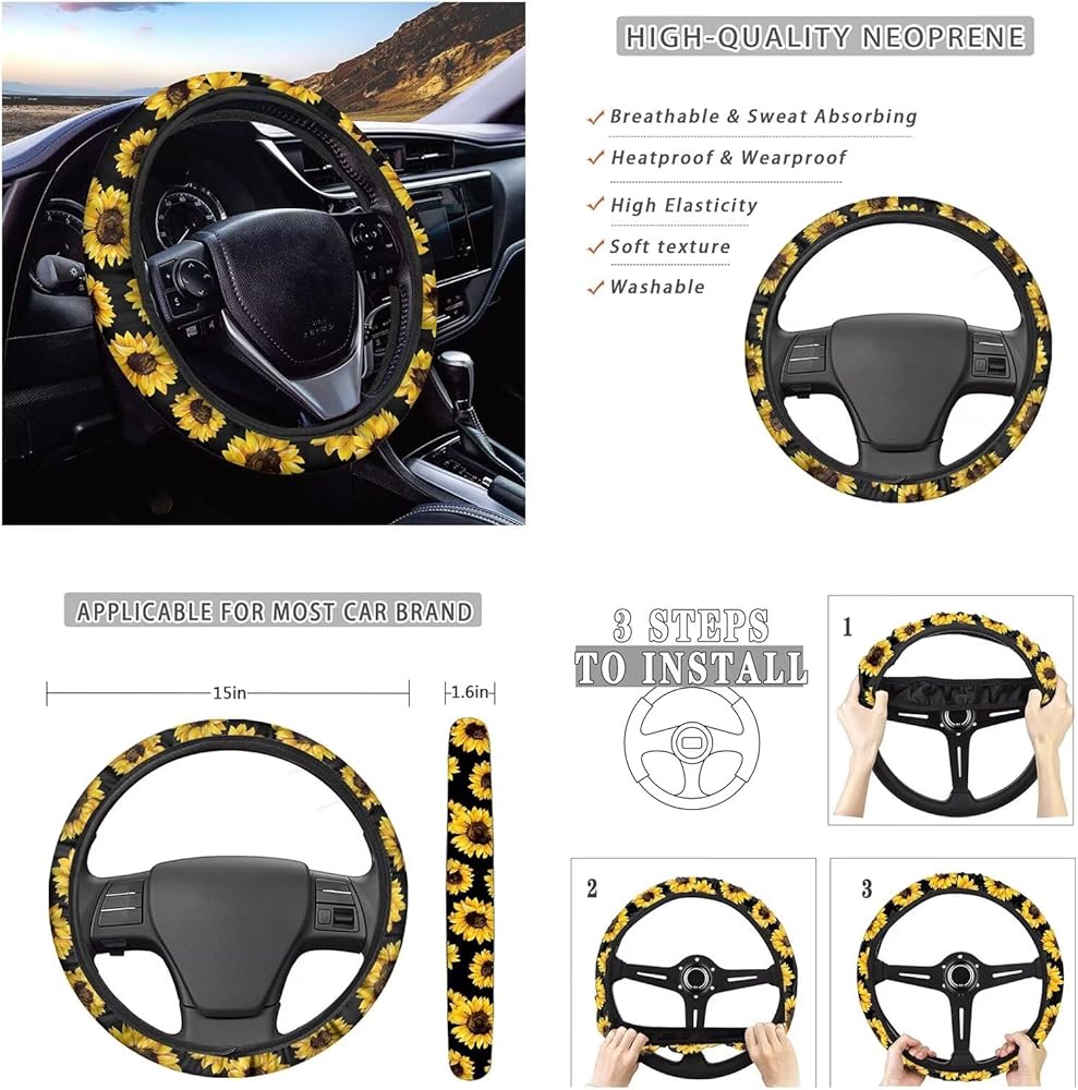 ❤ Car Steering wheel Cover: Suitable for most steering wheels: It can be stretched to fit a standard steering wheel with a diameter of 14-15 inches. The fancy steering wheel cover is one of the most appreciated car accessories for women, men.