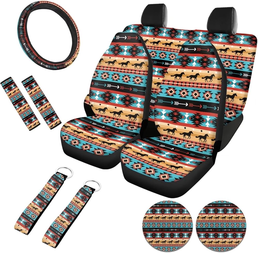 ❤ Car Seat Covers Full Set: Include 2pcs front seat cover. 1pc rear backrest cover, 1pc rear bottom bench cover. Broad compatibility, fit most seats with built-in or adjustable headrests; Non Slip Backing: Traction Support Prevents the Covers From Sliding or Slipping Around.