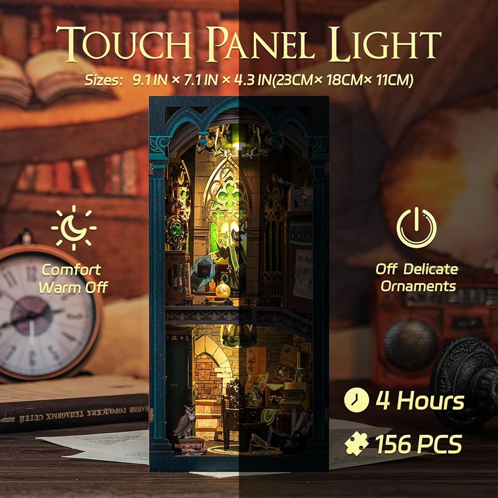 【Warm Notice】Dust cover is included, keeping cleaning and protecting the dollhouse bookshelf insert. The diy miniature booknook kits have been inspected 100% carefully, so as to ensure that the accessories are complete and no missing part. If any question, please feel free to contact us, we will solve any problem asap. Note: you need to prepare silicone liquid glue and two batteries(type AAA).