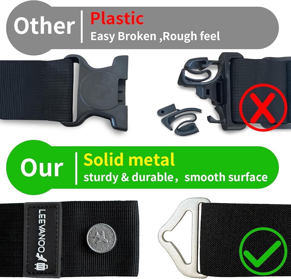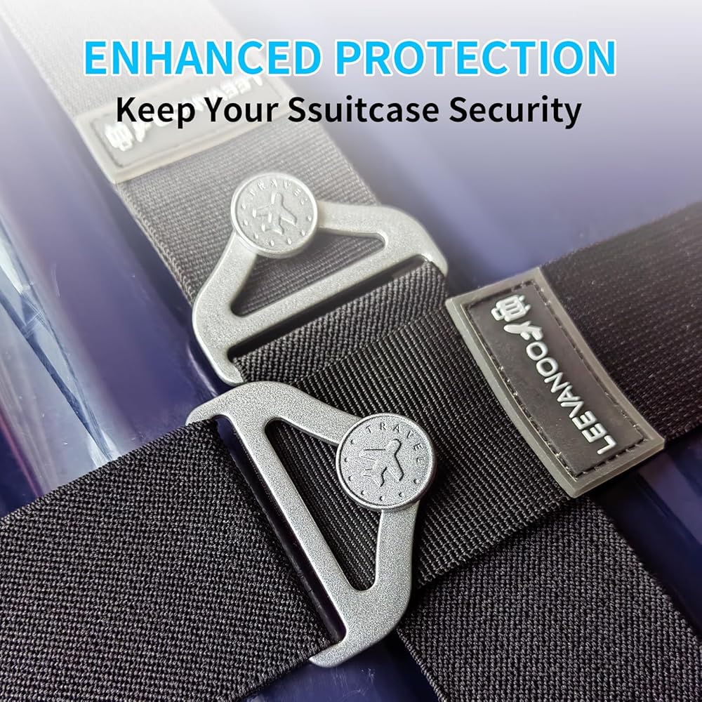 【Gift and Convenience】 First, wrap one around the top of your bag and the other around the sides; second, secure it with an alloy buckle and grab it with a pull. LEEVANOO luggage straps provide you with help and convenience, and can also be given as gifts to family and friends who love to travel.