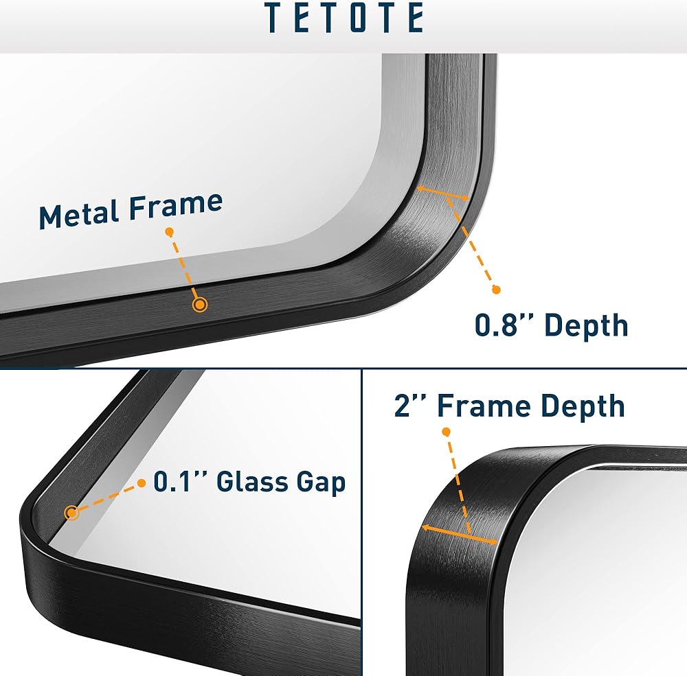 ✨【Minimalist Wall Mirror】TETOTE's 36 x 30 inches bathroom wall mirror is made of HD glass and premium black metal frame. Rectangle shape and round corner features the minimalist style. Meets the decor needs to industry, rustic and modern style of bathroom, bedroom vanity, entryway, farmhouse, hotel or salon.