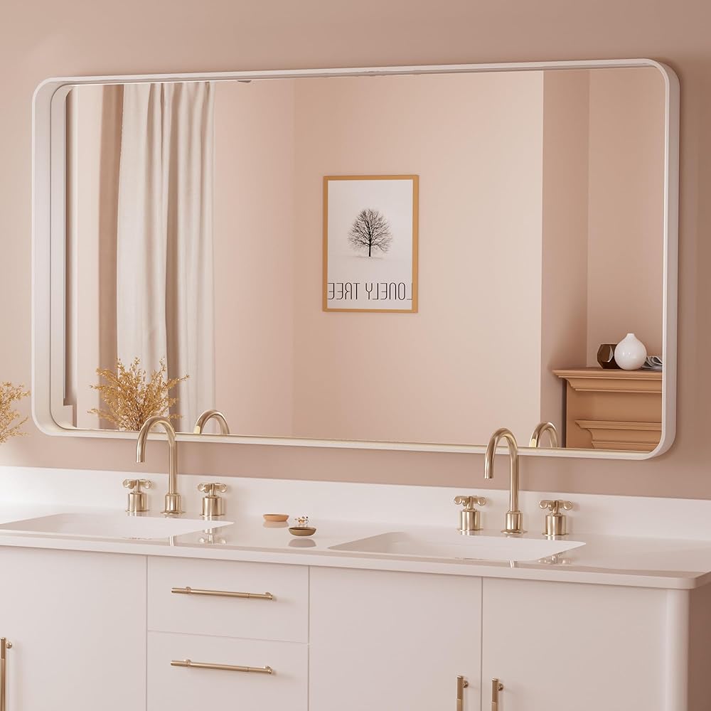 ✨【5mm Shatterproof Glass】 A wonderful bathroom mirror is always combined with several craftwork layers. Excellent silver plated layer provides HD refection without any distortion on the wall mounted mirror. And shatterproof film is the important layer to keep people safe once the mirror is broken in accident
