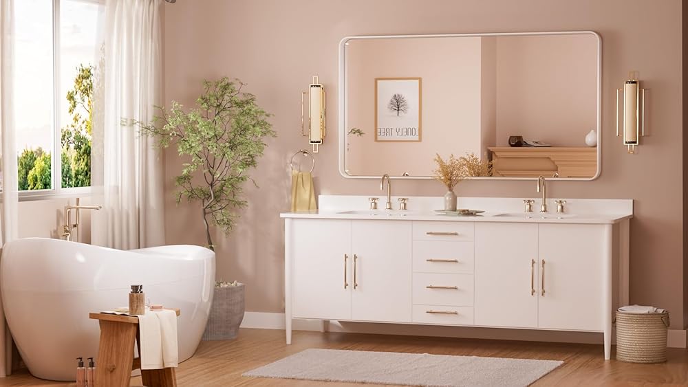 ✨【Durable Metal Frame】 Aluminum alloy frame adopts straight grain brushed process to enrich the edge of this bathroom mirror with metallic luster and texture. Anodizing process makes the metal frame waterproof and antirust. Durable and non-deformed shape