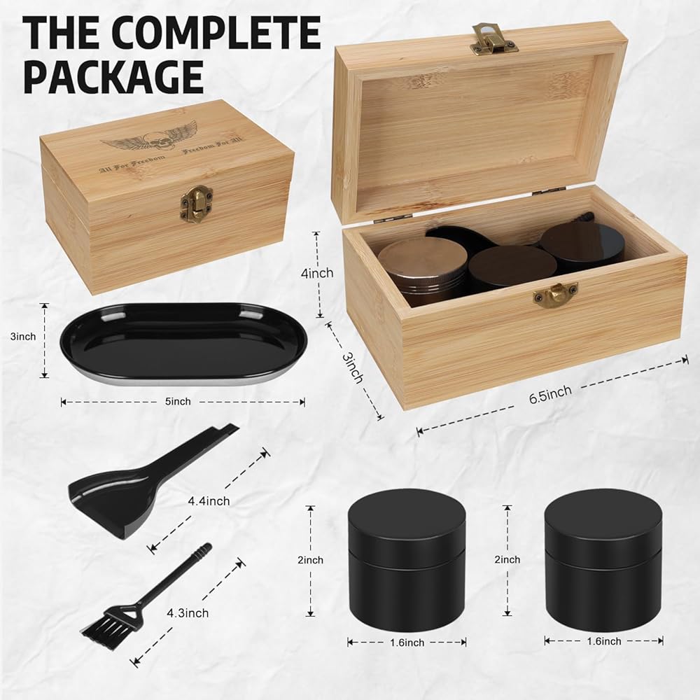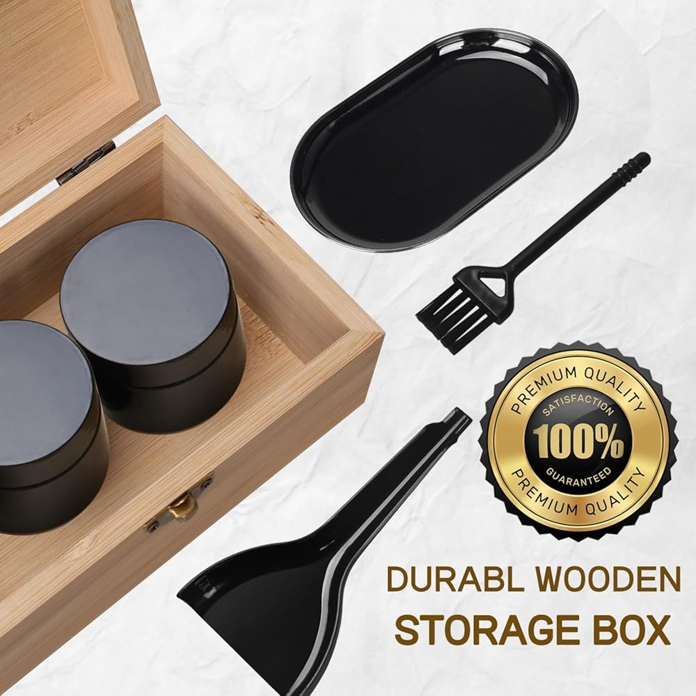 Convenience Storage Box: Our bamboo wooden storage box measures 6.5 x 4.1x 3.1 inches externally and 5.8 x 3.5 x 2.8 inches internally, providing convenient storage for a variety of items. Comes with two jars, tray, and more for all your needs.