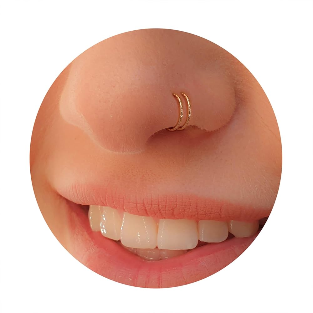 ♥ Comfortable, delicate Fake Double Nose Piercing - Faux Nose piercing hoop - 14K Gold Filled False Nose Ring.
