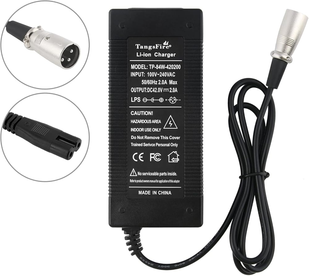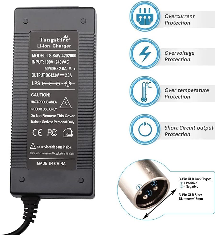 42v 2a scooter charger: Global applicable AC input voltage 100V-240V, 50/60Hz, NOT DC5.5MM 3-Prong Connector. NOT for 24V/25.2V/29.4V version.
